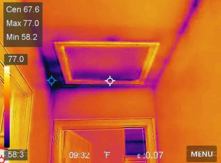Thermal imaging leak detection is a portable device using infrared technology to scan building surfaces to detect heat radiation and hidden moisture. A fast, safe and reliable leak detection method used before, during and after spray testing the trouble areas.